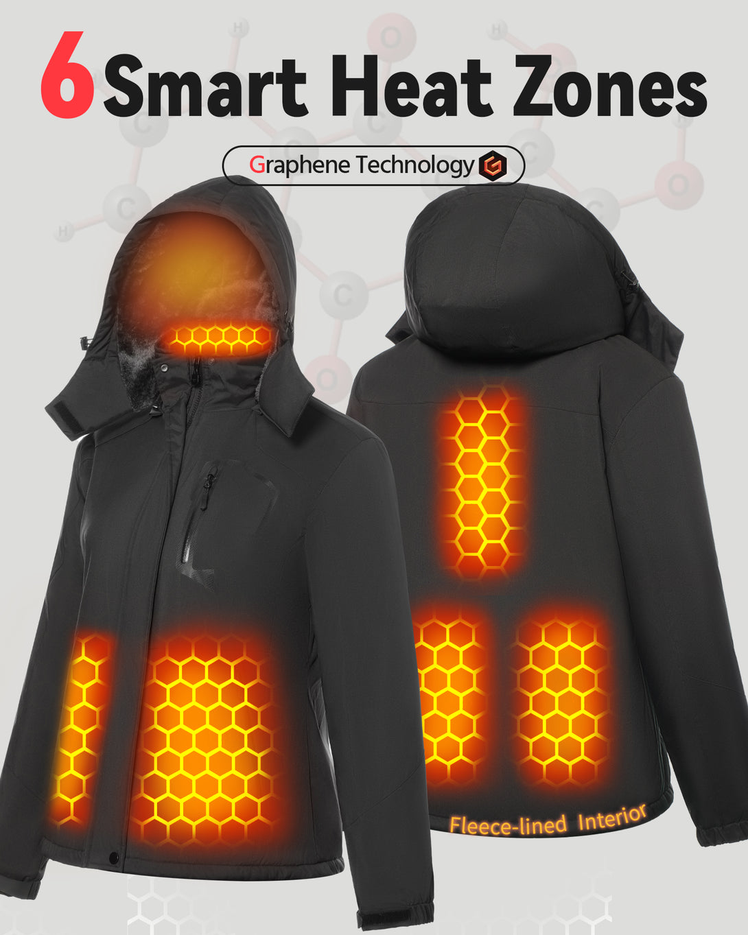 - REVOLUTIONARY GRAPHENE HEATING: Embrace the future of warmth with our graphene-infused technology, providing rapid and consistent heat throughout the jacket.