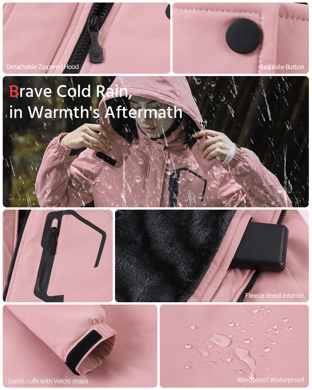 - Fleece-lined interior, Detachable Hood and Elastic Cuffs with Velcro Straps.