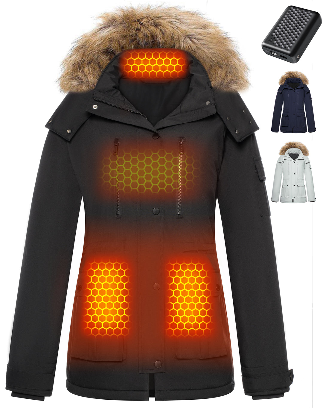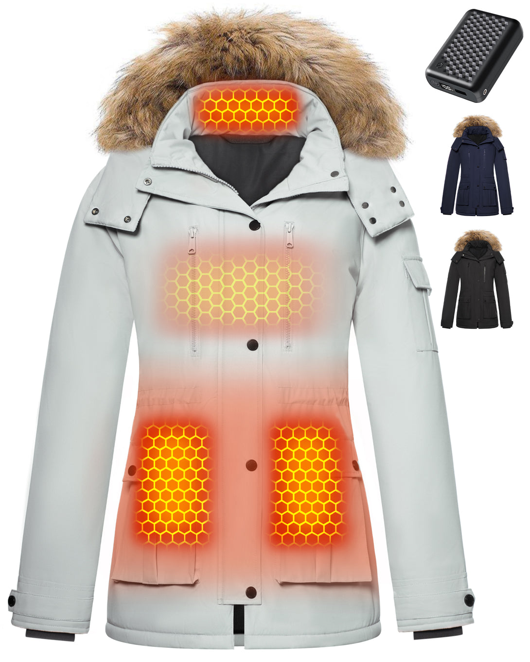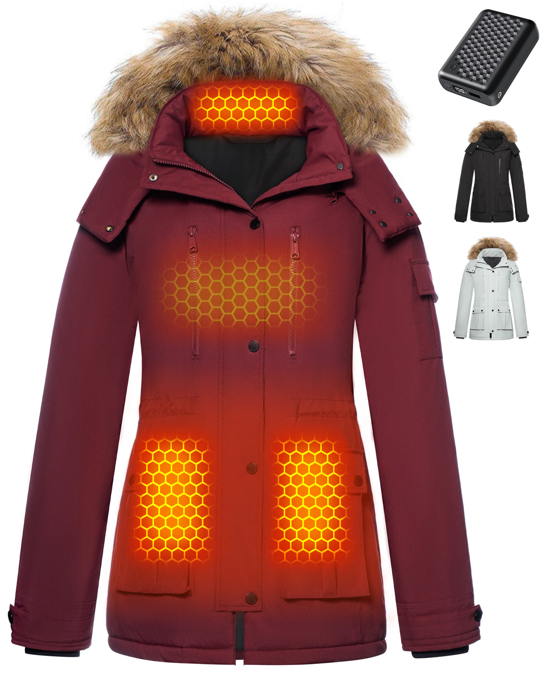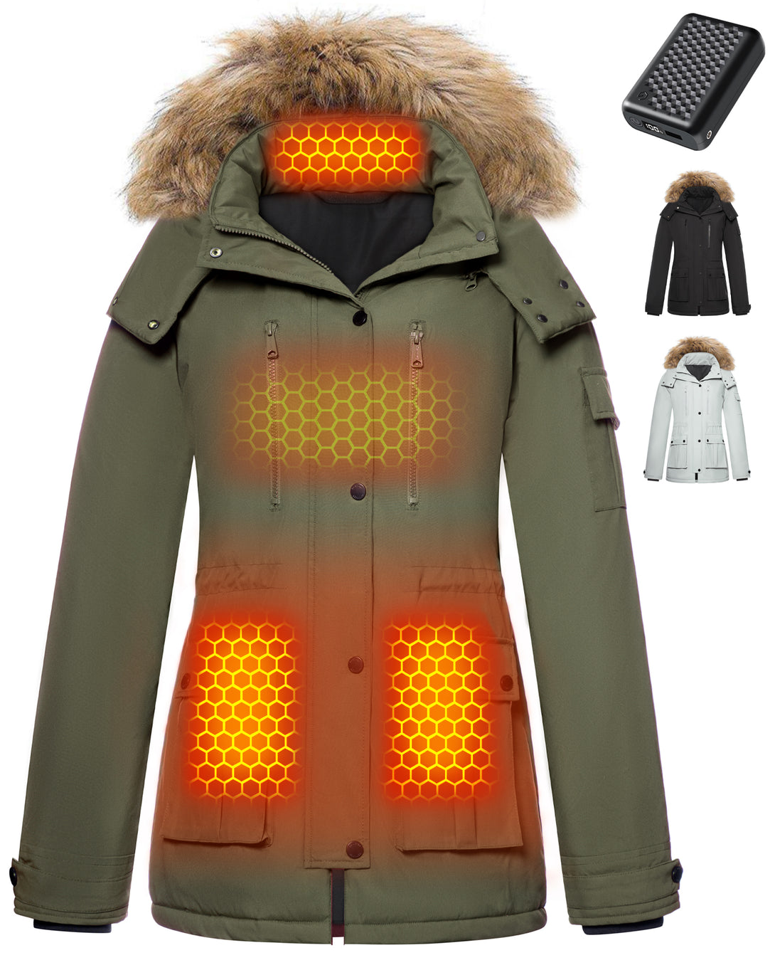 1 × Women's Heated Drawstring Waist Parka