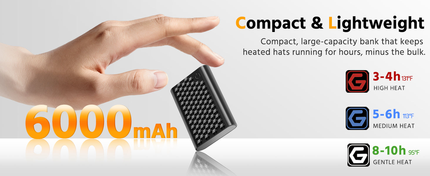 • PORTABLE POWER: Features a built-in 6000mAh removable battery weighing only 100g, delivering extended warmth through graphene's triple heating modes while maintaining lightweight comfort. The USB port also charges other mobile devices on the go.